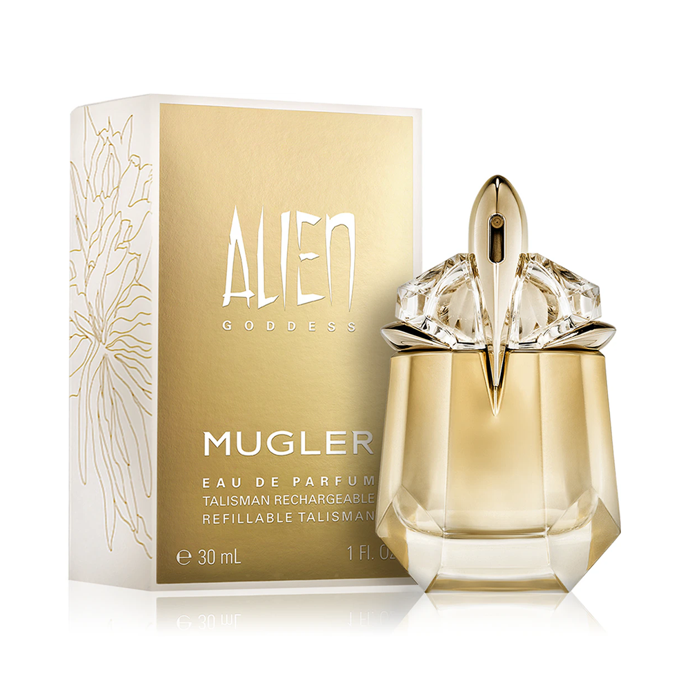 Mugler Alien Goddess Eau de Parfum este o esență feminină floral-lemnoasă, lansată în 2021, ce celebrează lumina interioară și energia pozitivă. Debutează cu bergamotă luminoasă, continuă cu iasomie indiană radiantă și se finalizează cu o bază caldă de vanilie Madagascar și kasmeran. Ideal pentru femeile care își afirmă unicitatea, perfect pentru zile însorite și momente în care vrei să strălucești.